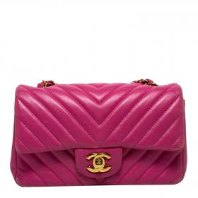 Pink Lambskin Chevron Mini Rectangular Flap with GHW